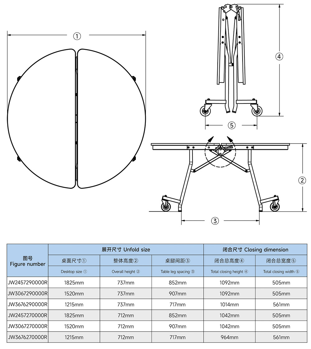 ●Product function: the whole table can be folded in parallel, greatly saving storage space. The mechanical torsion spring design makes it easier to unfold or fold