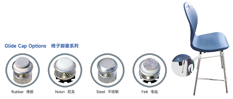 ● 椅子底腳可選擇尼龍材質(zhì)、毛氈材質(zhì)、鐵底材質(zhì)、橡膠材質(zhì)