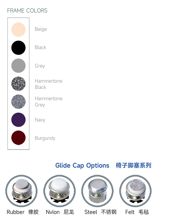 ● 椅子腳塞可以是尼龍,橡膠, 毛氈或者不銹鋼底以適用于不同的教室地板
